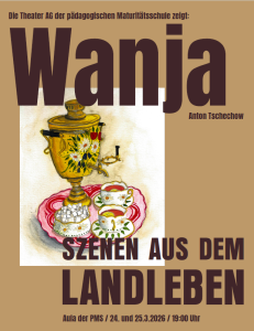 Am 24. und 25. März 2026 jeweils um 19h00 bringt die Theater AG in der Aula der PMS ein Stück Weltliteratur auf die Bühne: „Wanja“ von Anton Tschechow. Die Beteiligten freuen sich auf ein zahlreiches Publikum!
